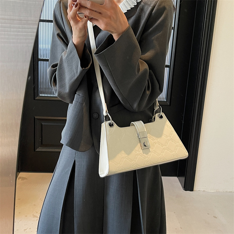 2025春夏の新型シンプルな四角のエンボスデザインの黒い脇の下のカバンの女子学生の通勤の斜め掛けのハンドバッグのカバン
