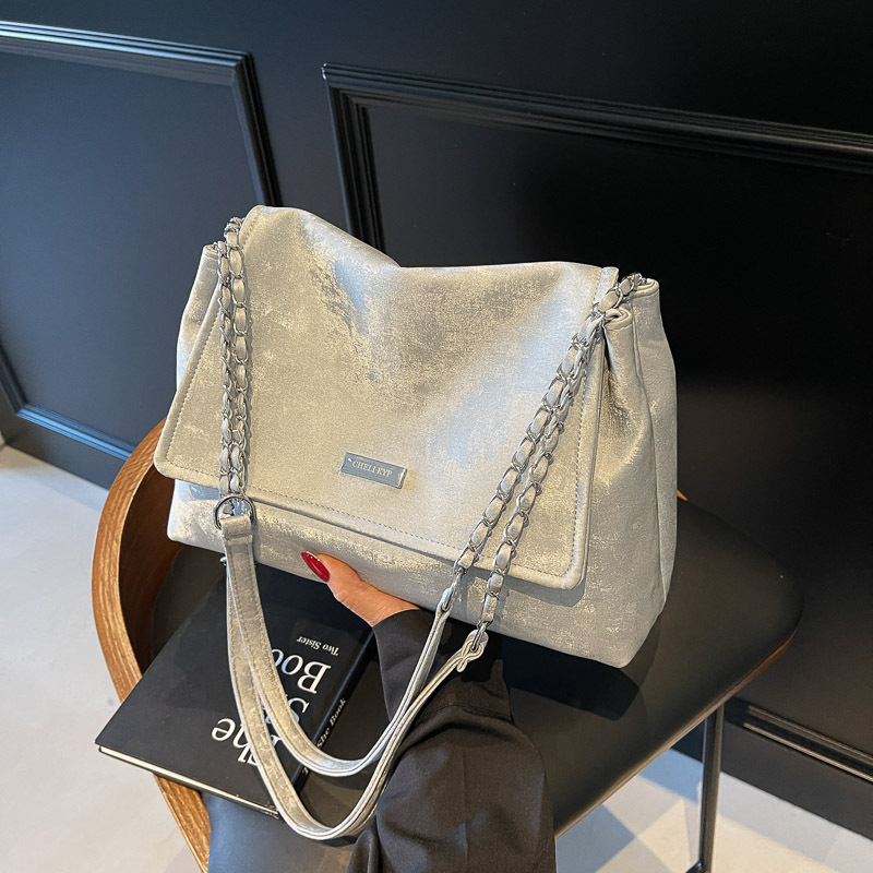 カジュアルソフト面大容量春夏バッグ女性2025新型流行百合チェーンシングルバッグ通勤バッグ