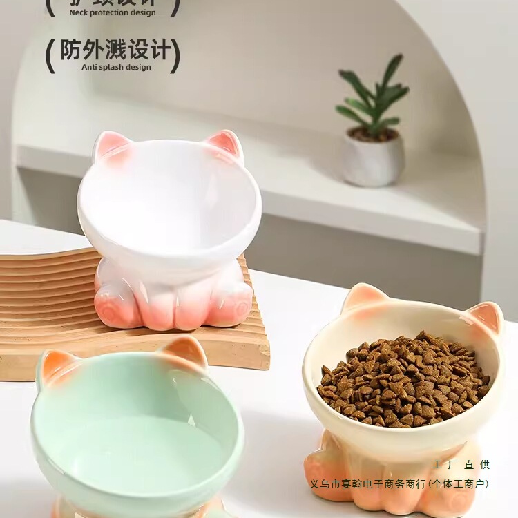 猫ボウルセラミック保護頚椎猫ボウルキャットフードボウル飲料水ボウル犬ボウル大口径ペットハイボウル転倒防止