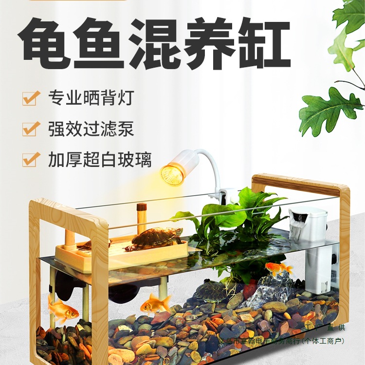 木目調カメ水槽、超白色ガラスヴィラ、エコオールインワン飼育水槽、大小造園魚とカメの混合飼育水槽、日常使用