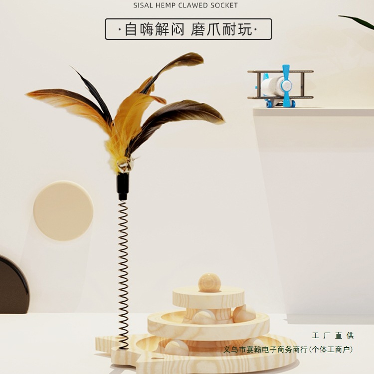 無垢材猫ターンテーブル、サイザル麻ロープ猫スクラッチポール、クライミングポール、猫おもちゃ、ミントボール、子猫退屈解消猫おもちゃ用品