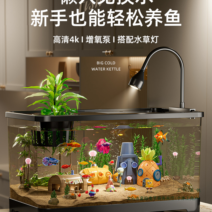 水槽エコ水族館プラスチック金魚水槽蓋付き透明リビングルーム小さな高級造園カメ水槽デスクトップ水槽