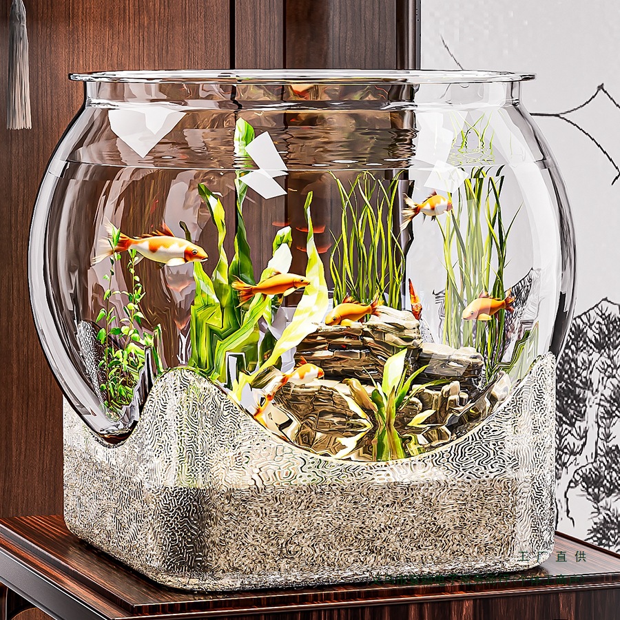 小さなリビングルーム用の丸いプラスチック水槽 2025 新しい模造ガラス、壊れにくい、家庭用高透明デスクトップ生態水槽