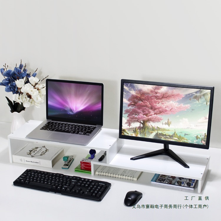 コンピュータモニターベース格納式二層ラック拡張24ワイドデスクストレージノートブック木製スタンド日常使用