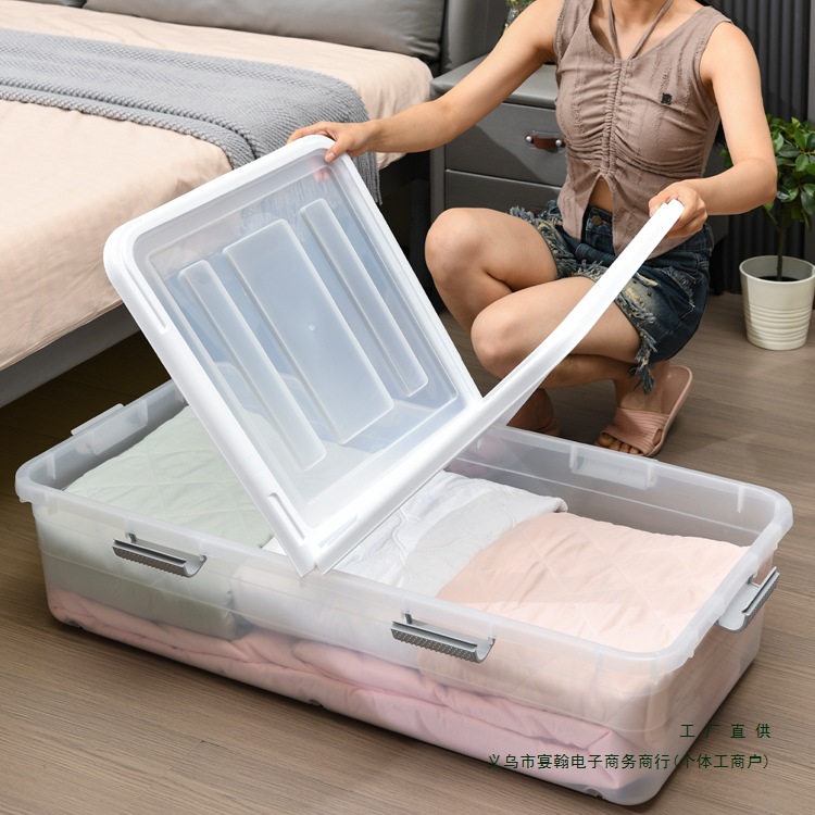 ベッド下収納ボックス引き出し式プラスチック滑車フラットベッド下収納家庭用大容量透明収納ボックス日常使用