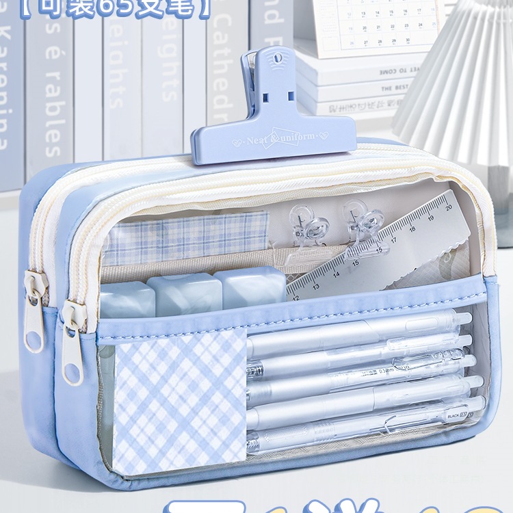 筆袋 大容量 透明 女の子文具箱 中学生筆箱 男女学生文具袋 女性モデル