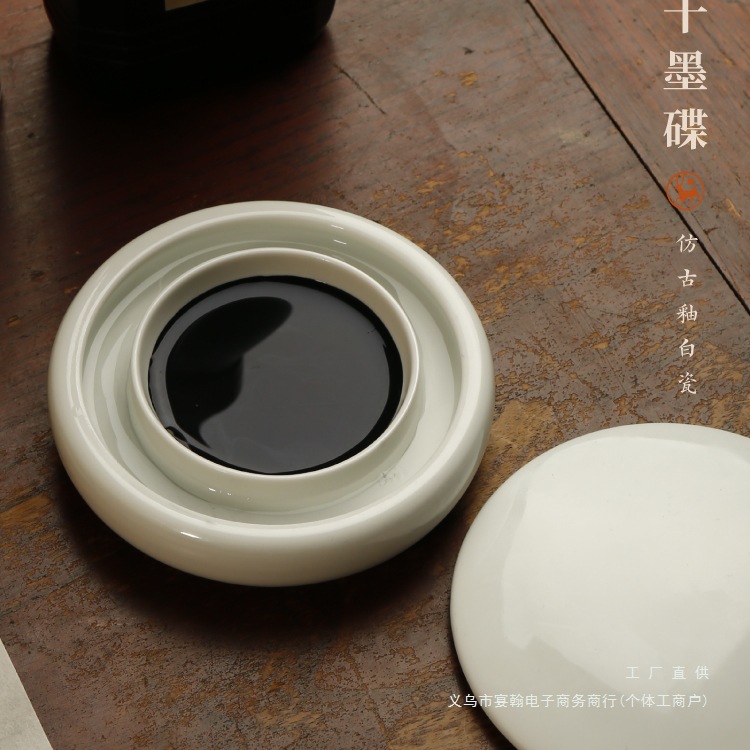 アンティーク釉白磁インク皿鍋墨台蓋付き乾燥防止インク皿磁器装飾品インク保存書道用品文房