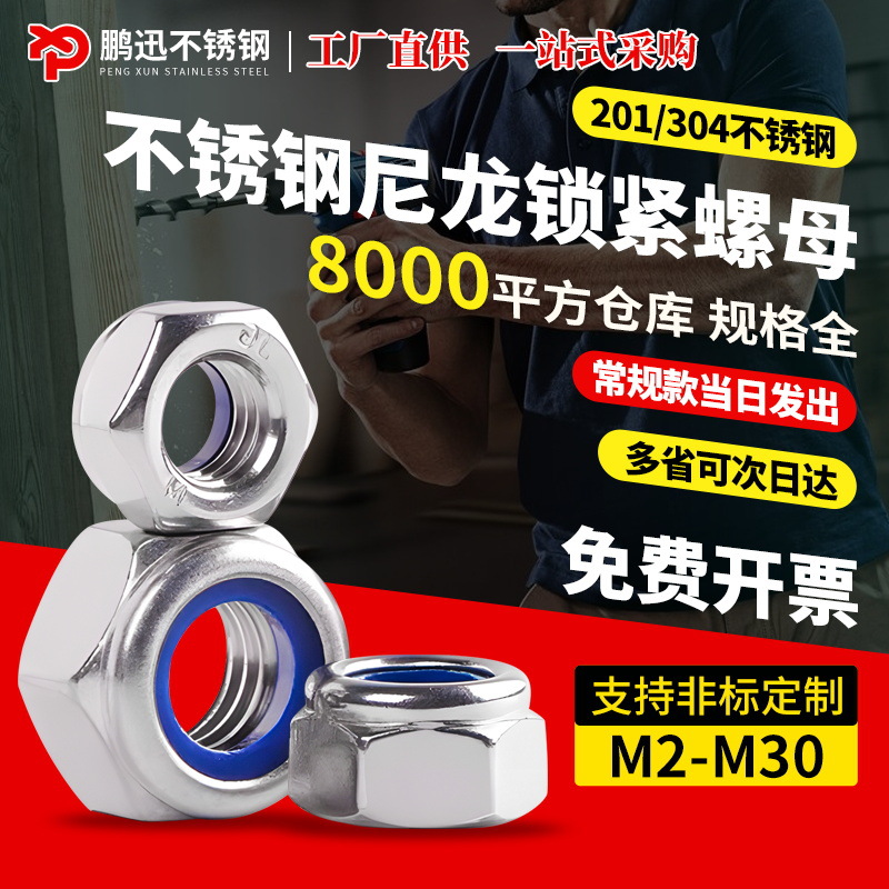 304ステンレスナット ナイロン滑り止めロック六角ナット M3M4M5M6M8M10M12 新エネルギー対応