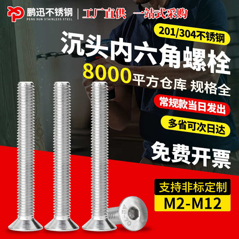 304ステンレス沈頭六角ねじ平頭平杯ボルトねじm 2m 3m 4m 5m 6m 8m 10m 12m 16