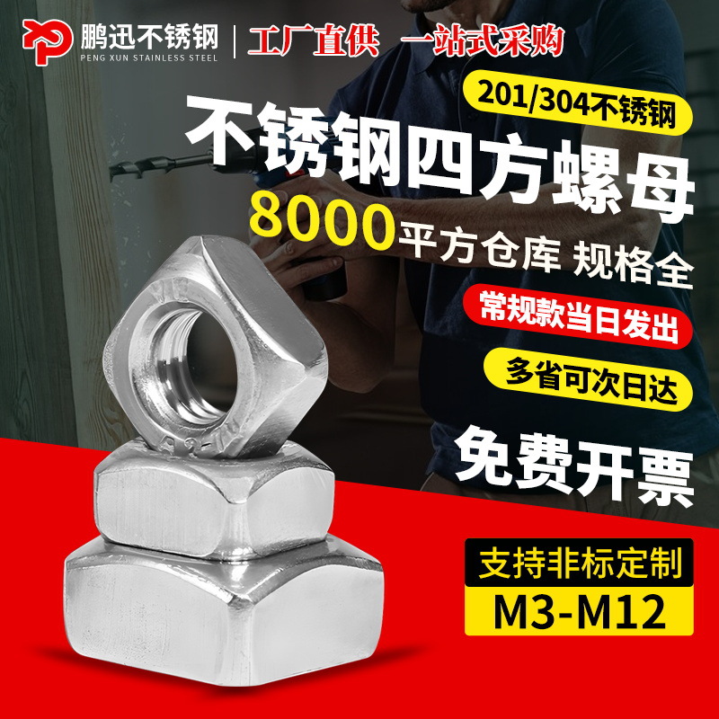 304ステンレス鋼角ナット 四角ナット 角型ナット M3M4M5M6M8M10M12 防錆