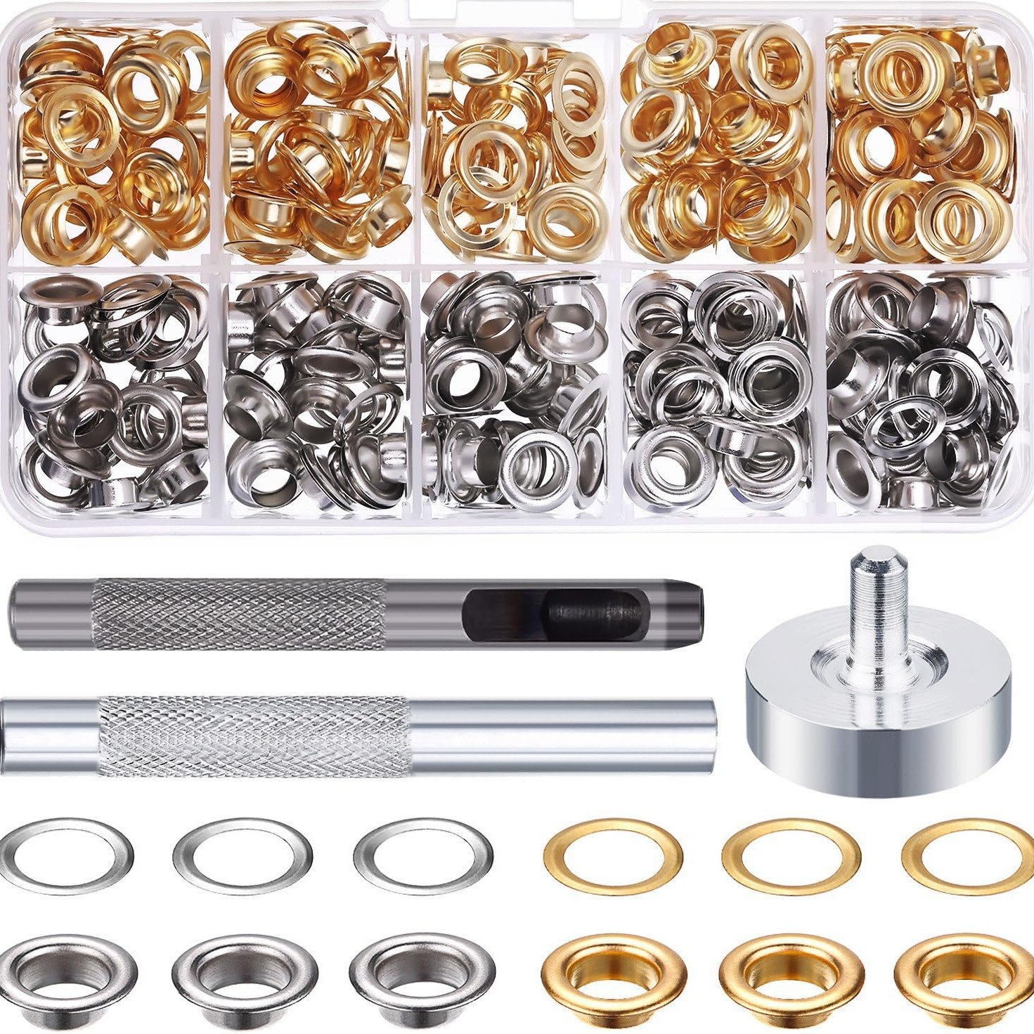 クロスボーダー熱売6mm気眼鉗子grommet配100 200 400金色銀色気眼鶏眼セット