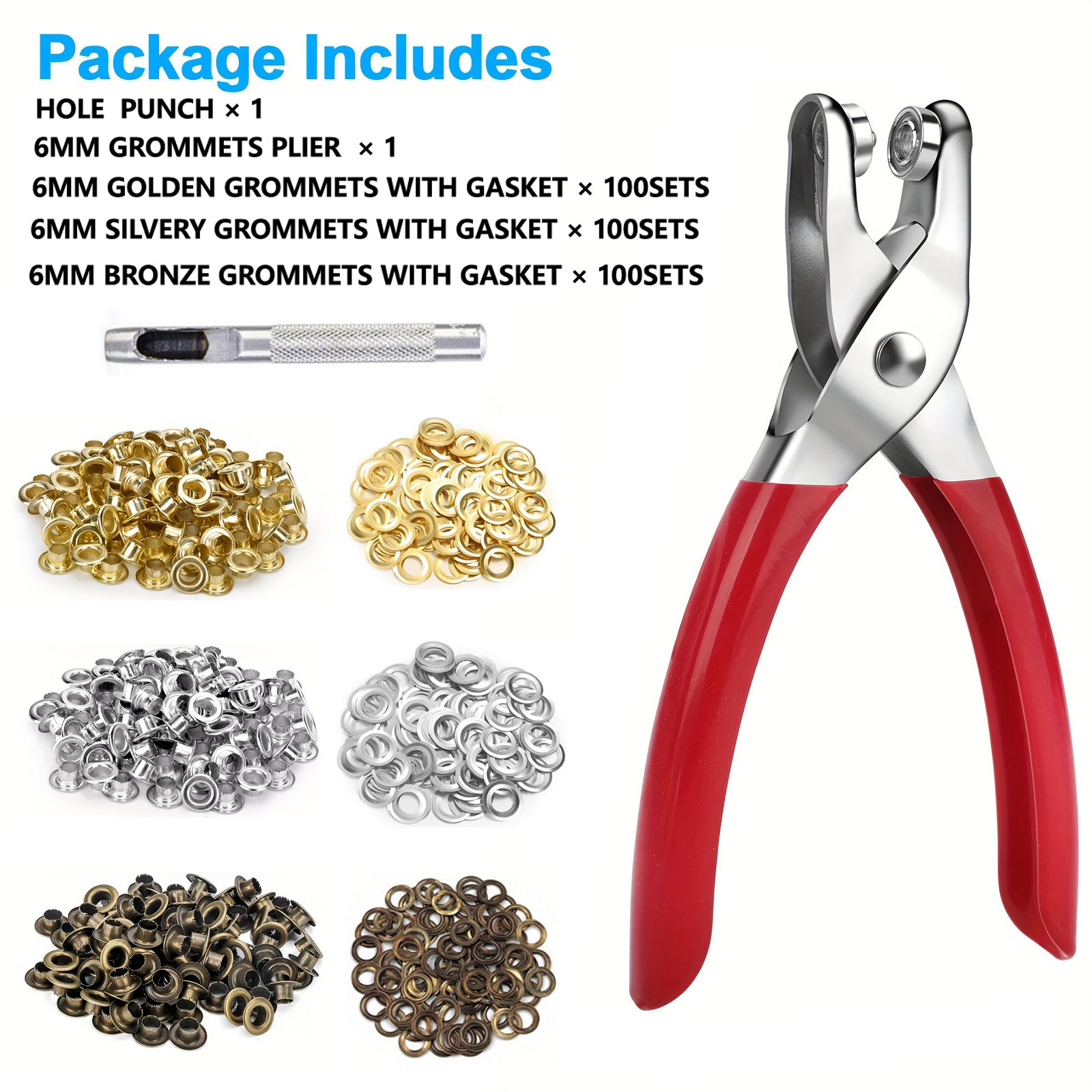 裁縫用品6mm空気眼鉗子取付穴開け工具300セット金/銀/青銅混合ガスケット