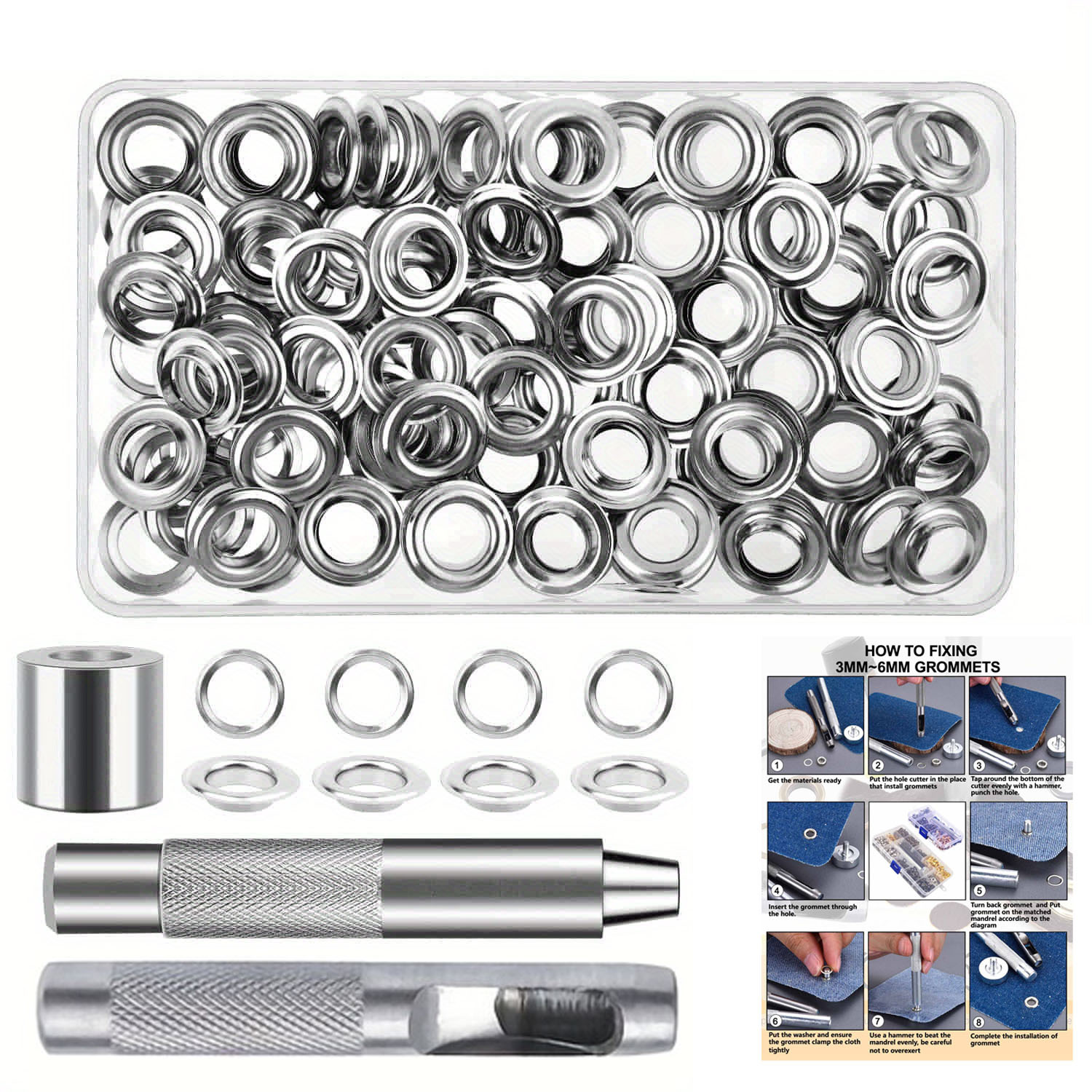国境を越えて人気のある100セット6/8/10/12mmの手で金属線の穴を叩く鶏眼靴の目の蒸気眼セット