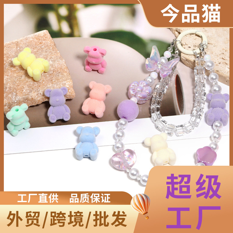 新しい植毛クマぬいぐるみビーズストレートホールルースビーズファッション diy 携帯電話チェーンビーズアクリルジュエリーアクセサリー