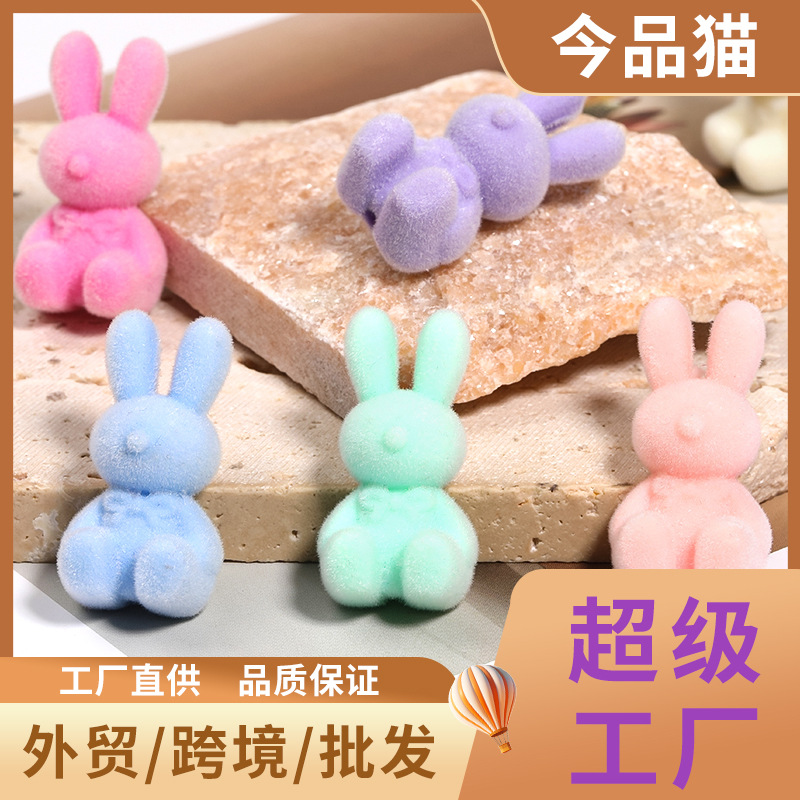 新型クロスボーダー植毛立体ウサギ樹脂部品創意手作りDIY装飾材料ブレスレットアクセサリー