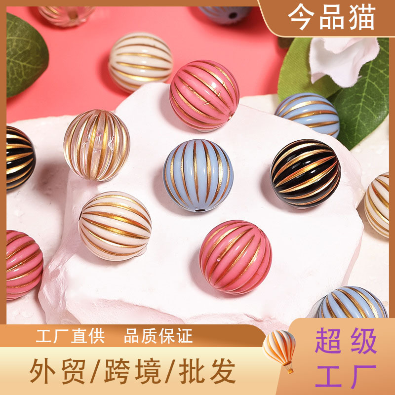 クロスボーダー新ストライププリントアクリルビーズ diy ブレスレットキーホルダー携帯電話チェーンジュエリーアクセサリールースビーズビーズ