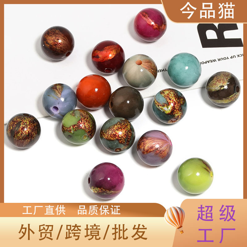 新しいスタイルのアンティーク金漆塗装アクリルビーズ diy ビーズペン携帯電話チェーンネックレスジュエリーアクセサリールースビーズ