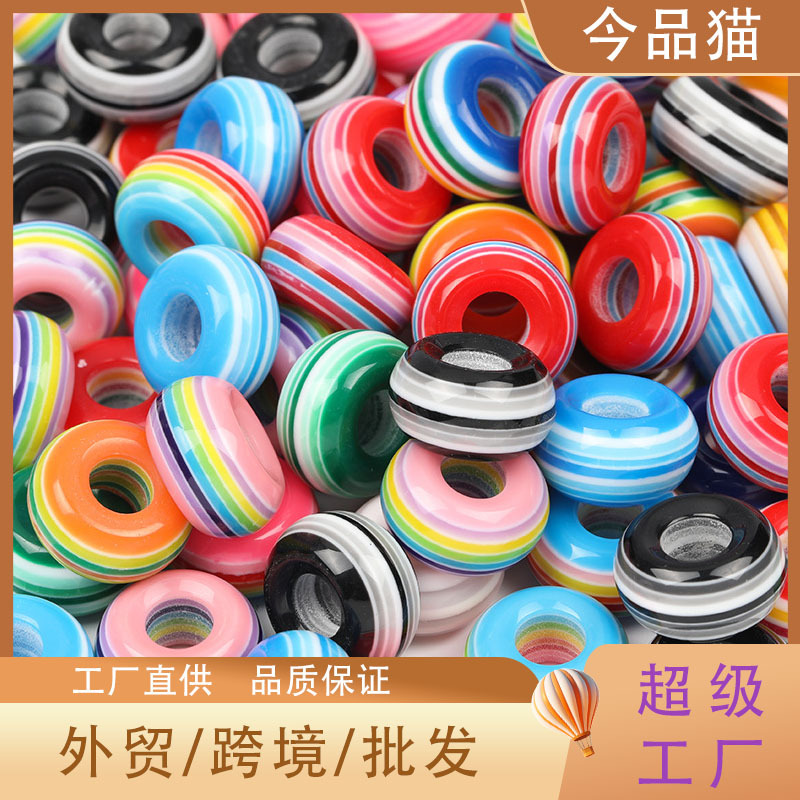 クロスボーダーカラフルなストライプ大穴ビーズ樹脂ホイールフラットビーズ手作り diy 携帯電話チェーンキーホルダールースビーズアクセサリー