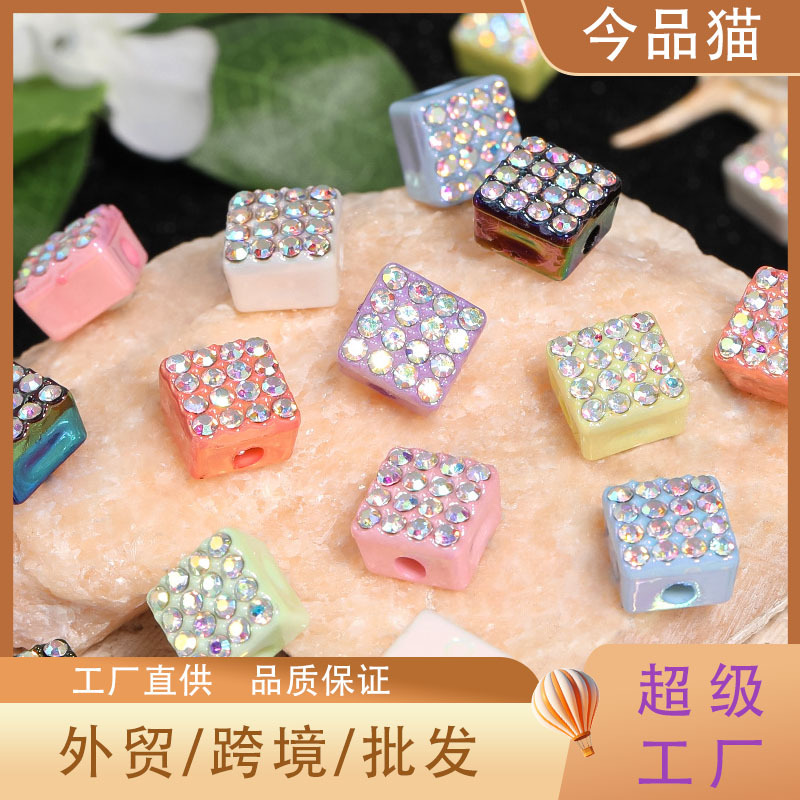 クロスボーダー新しいダイヤモンドがちりばめられたスクエアビーズカラーアクリルスクエアビーズ diy 携帯電話チェーンネックレスジュエリーアクセサリー卸売