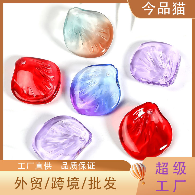 新しいグラデーションガラス花びら穴付き葉ガラスアクセサリー diy 手作りアンティークスタイルヘアピンタッセルジュエリーアクセサリー
