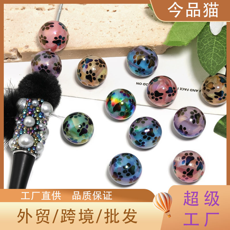 新しいアクリル黒猫の爪プリントラウンドビーズ UV メッキストレートホールビーズ diy ブレスレットビーズペンルースビーズアクセサリー