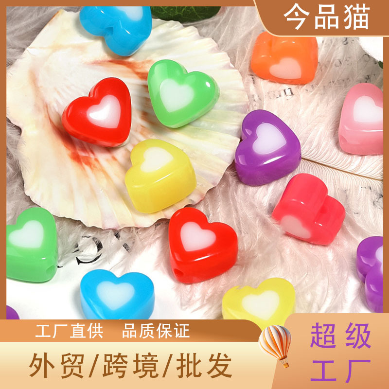 新しいカラフルなダブルラブビーズピーチハート垂直穴アクリル DIY 手作りビーズブレスレットネックレスジュエリーアクセサリー