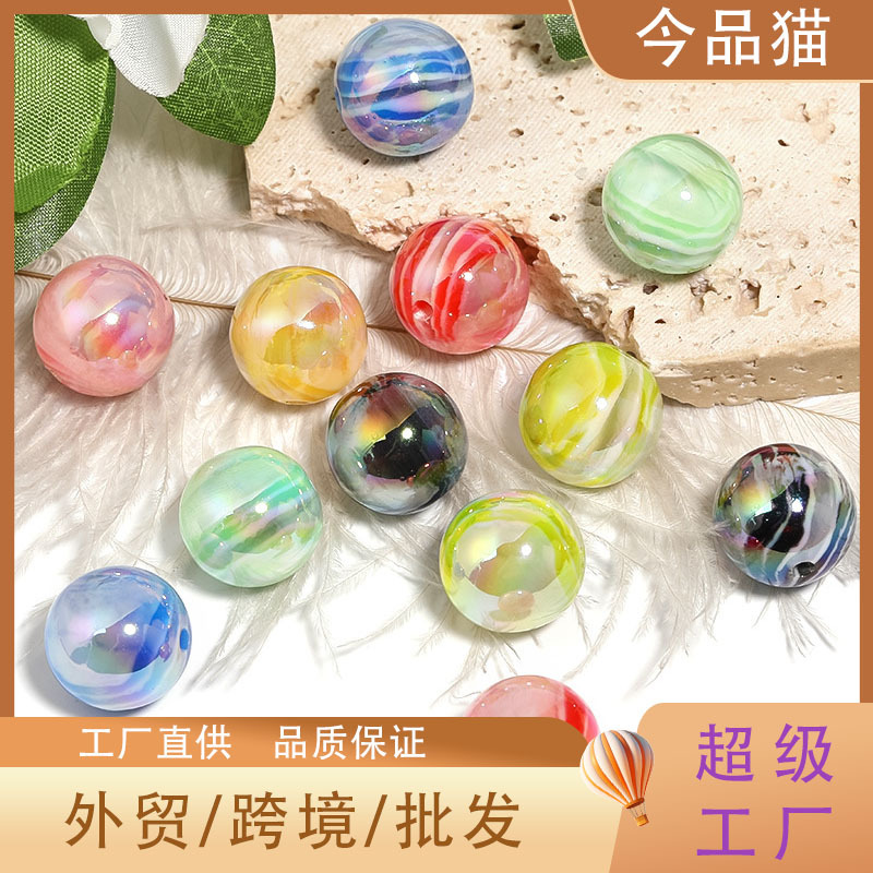 新しい模造大理石岩層ビーズカラフルなストライプビーズ手作り diy 携帯電話チェーンブレスレットジュエリーアクセサリールースビーズ