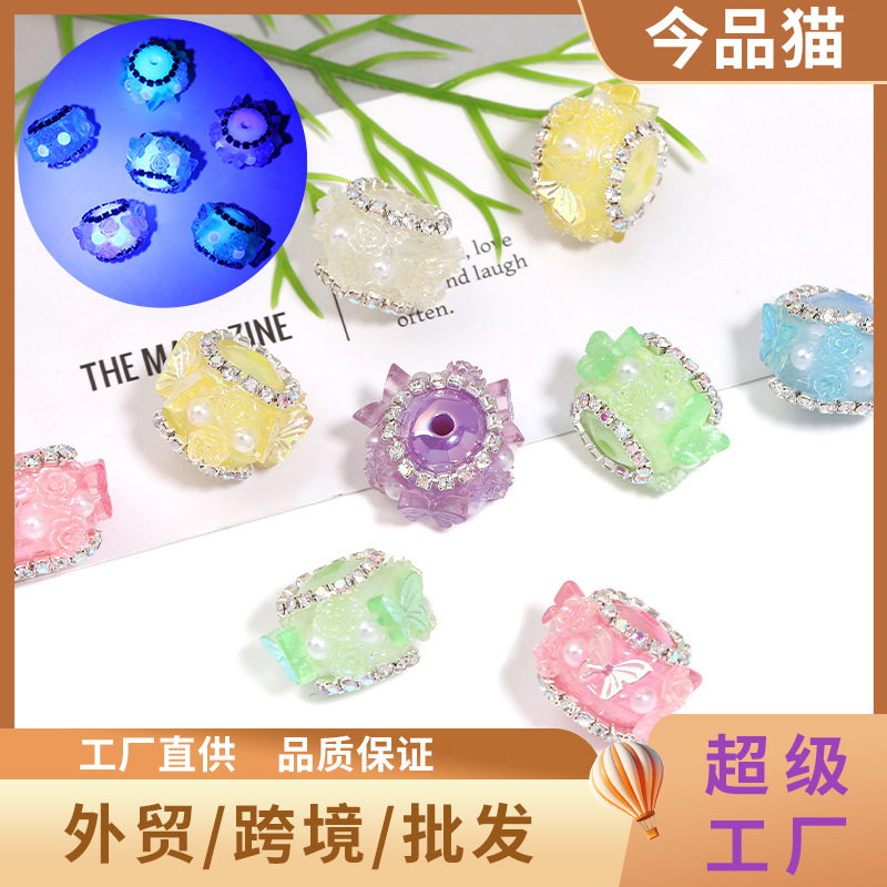クロスボーダー新しいフラワーダイヤモンドボールビーズアクリルストレートホールバタフライビーズ DIY 携帯電話チェーンルースビーズジュエリーアクセサリー