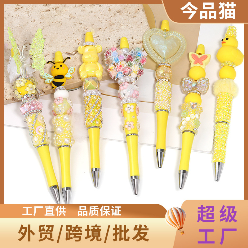 国境を越えた新しい黄色の完成したビーズペン、かわいい漫画のビーズペン、見栄えの良いクリエイティブな DIY ボールペン卸売