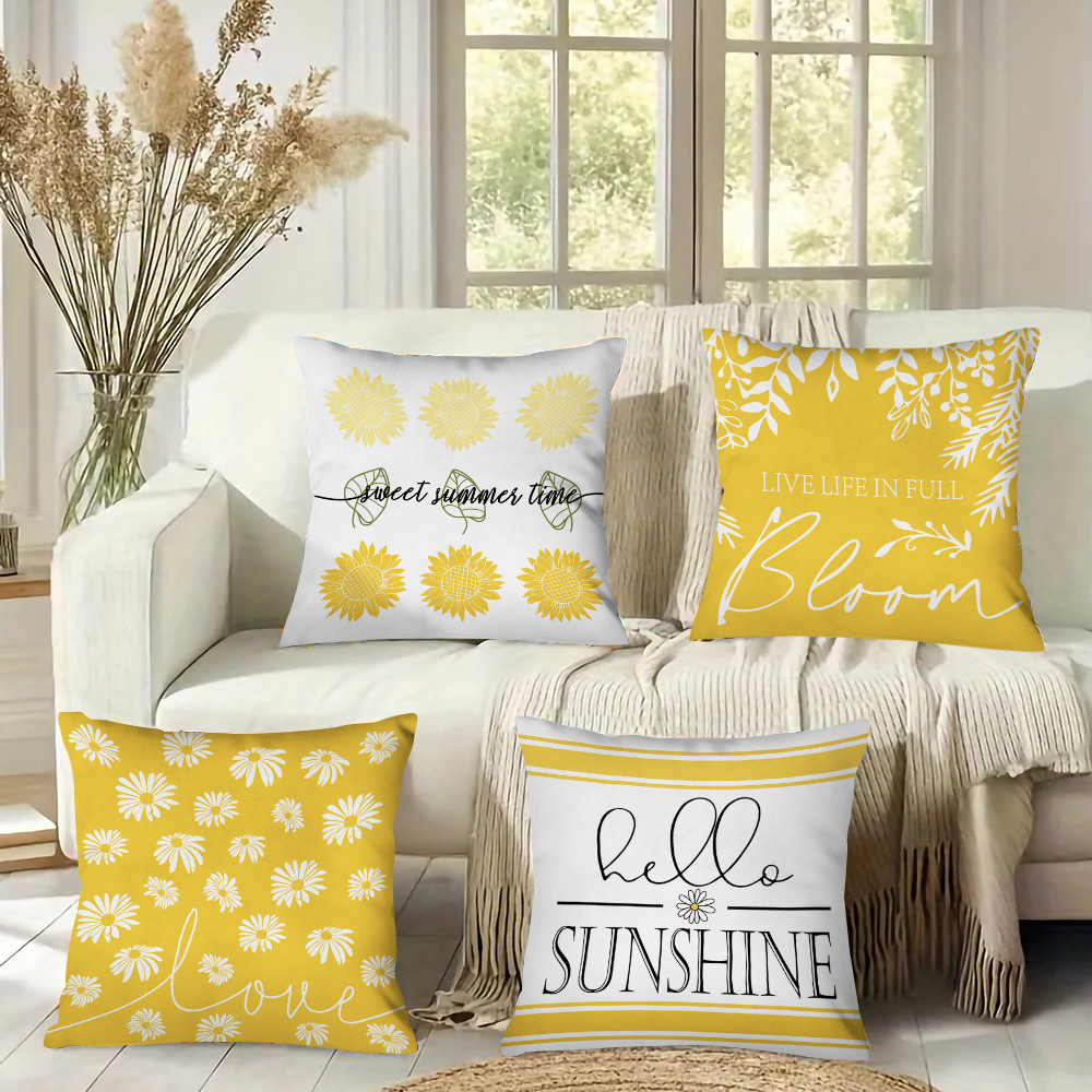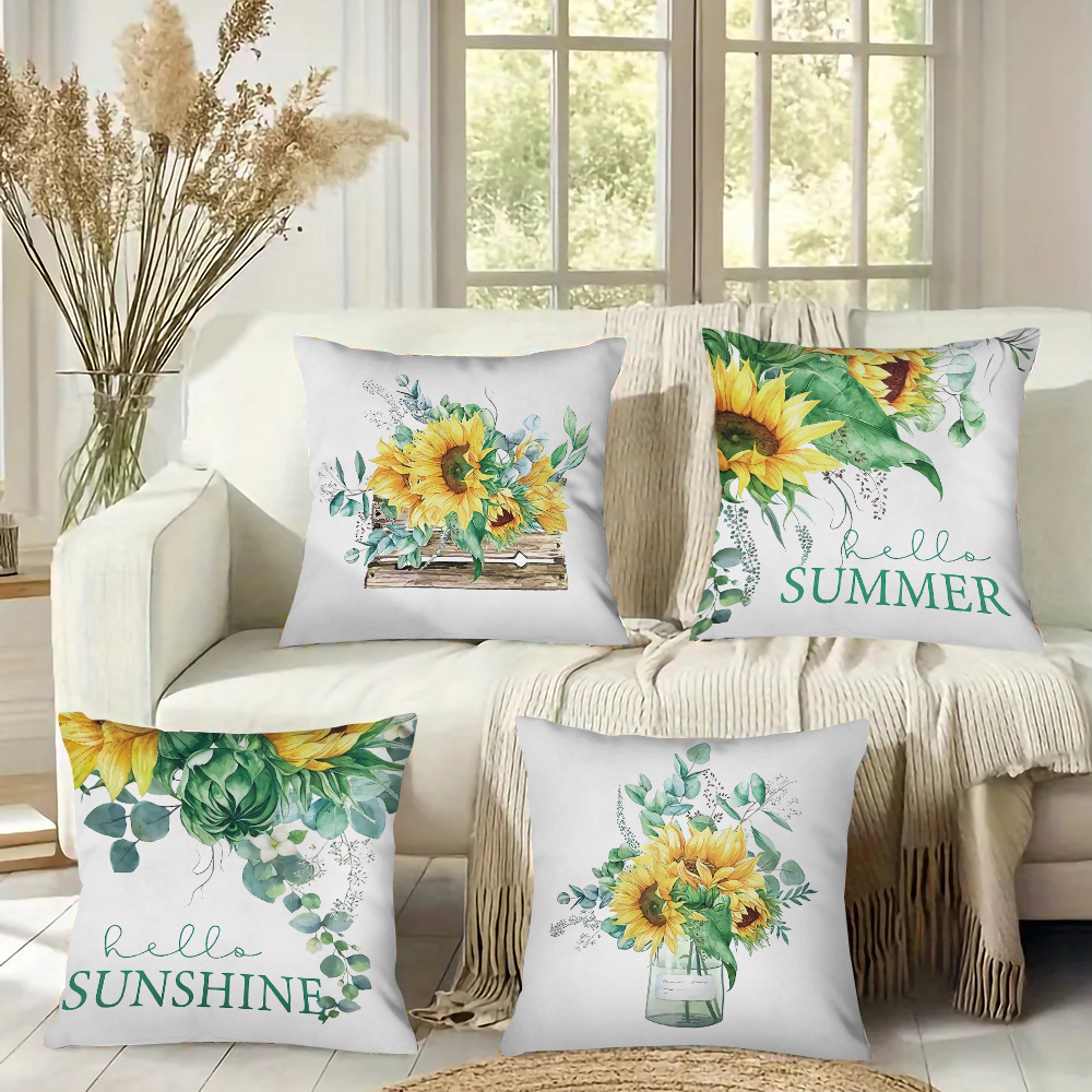 temu 新ひまわりスーパーソフト枕カバー夏の植物の花リビングルームソファクッションカバークロスボーダー枕カバー