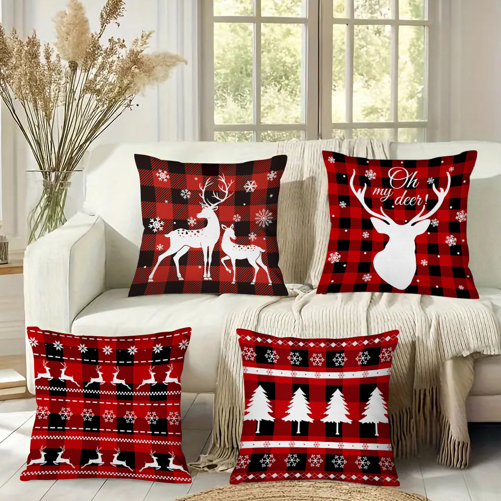 北欧ヘラジカスノーフレーククリスマス枕カバーブリダーランクルホームデコレーションソファクッションクッション