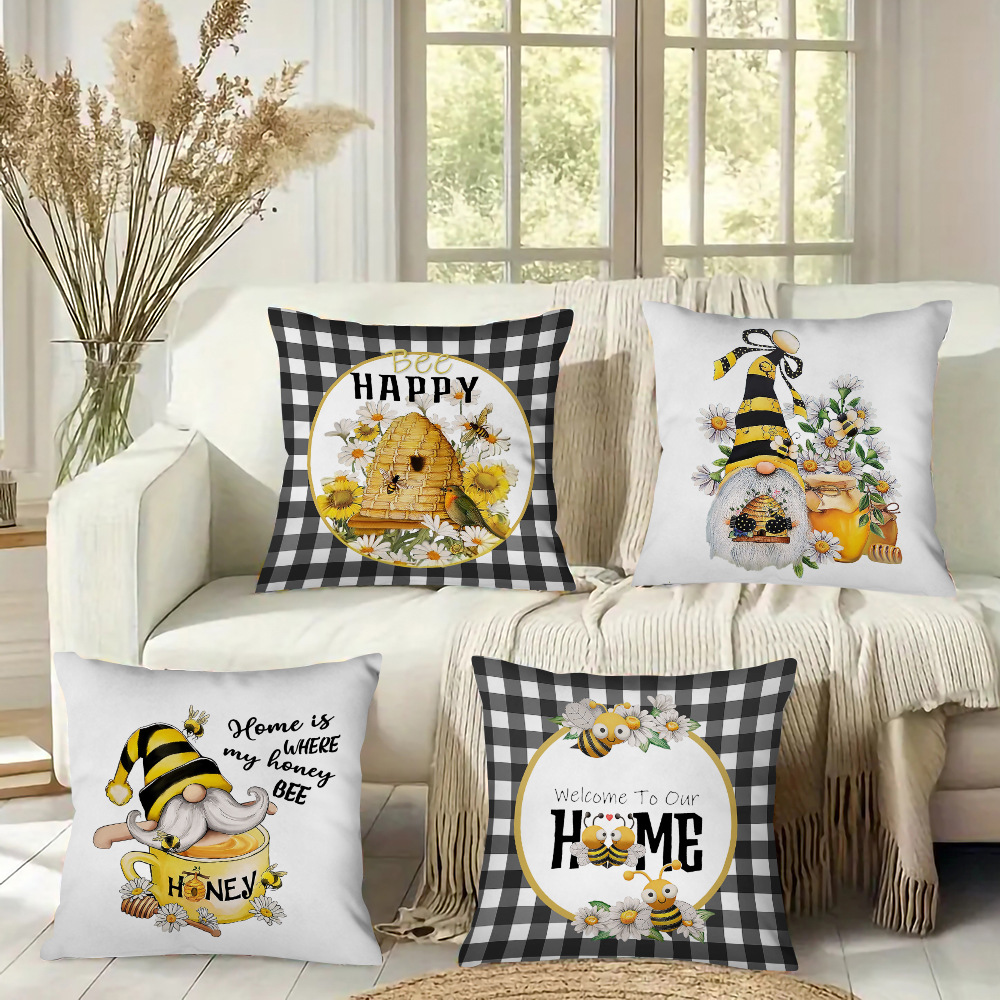 Amazon 新しい夏の蜂枕カバーレター黒と白のチェック柄モダンなミニマリストホームソファ装飾クッション