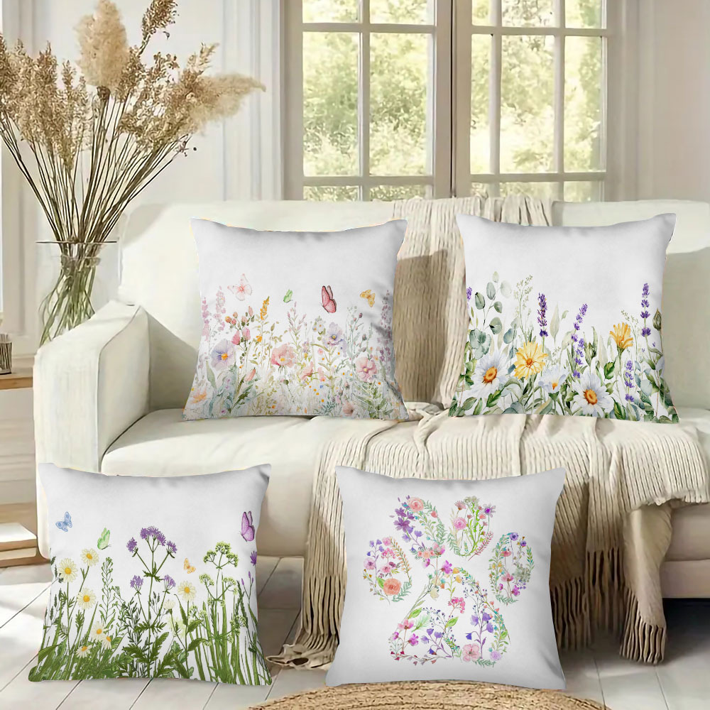クロスボーダー新しい新鮮なデイジー枕カバーリネンプリントホリデーホームリビングルームソファ枕カバークッションカバー