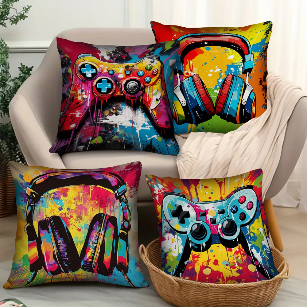 クロスボーダーカラフルな落書きゲームコンソールプリント枕カバー家の装飾クリエイティブソファ枕クッションカバー卸売