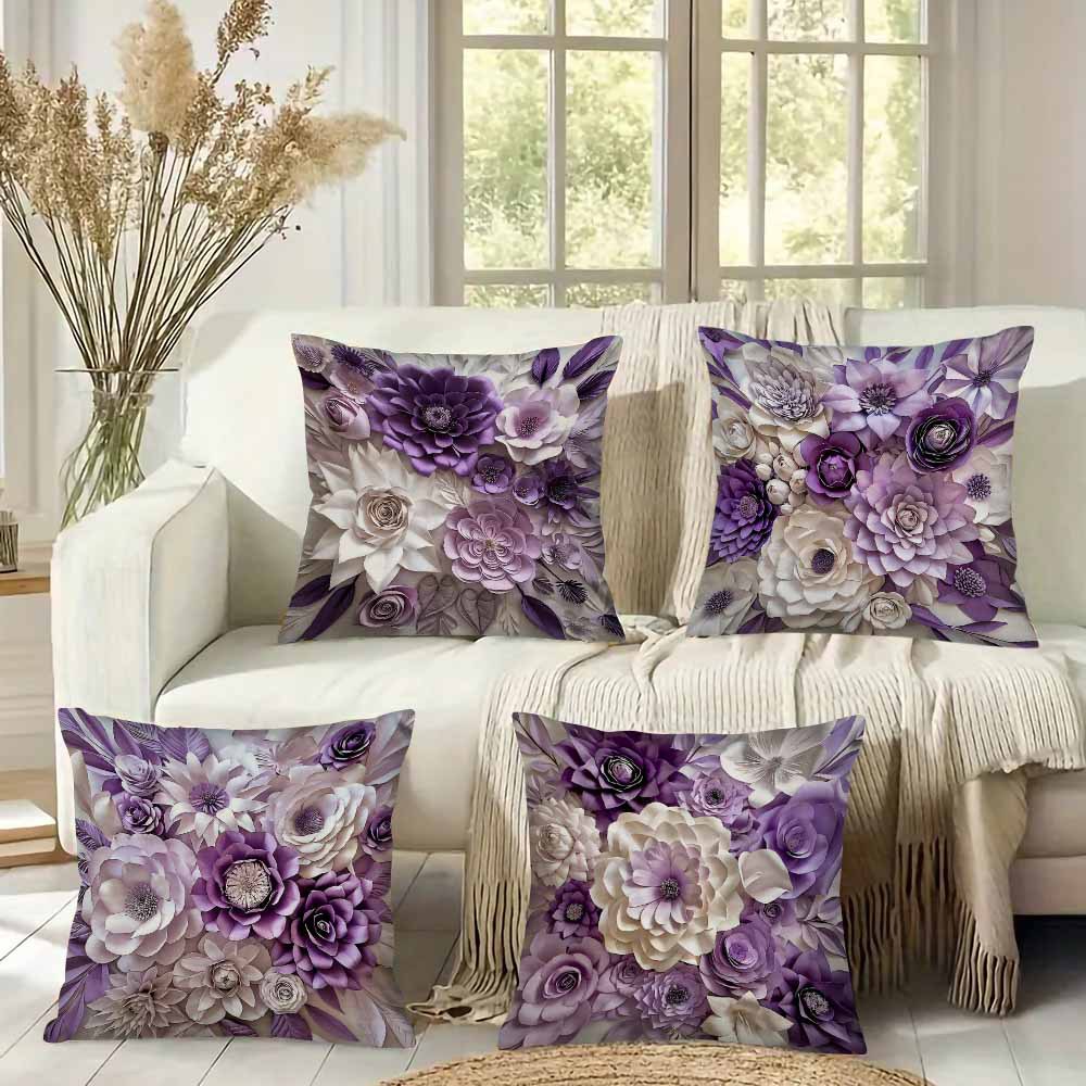 新しいクロスボーダー 3D 模造立体紫色の花枕カバーアマゾンホームリビングルームソファクッション枕装飾