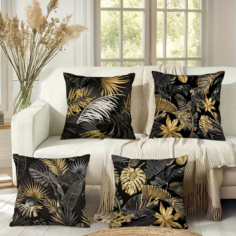 アマゾン爆型北欧黒金植物抱き枕カバー家庭用品夏ソファー亜麻通気クッションカバー