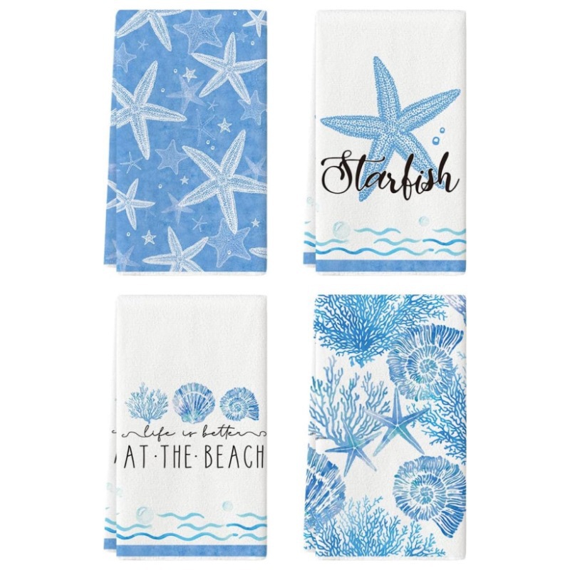 海星ホタテ海洋テーマキッチンタオル国境を越えたアマゾン日用キッチン清潔布浴室装飾タオル