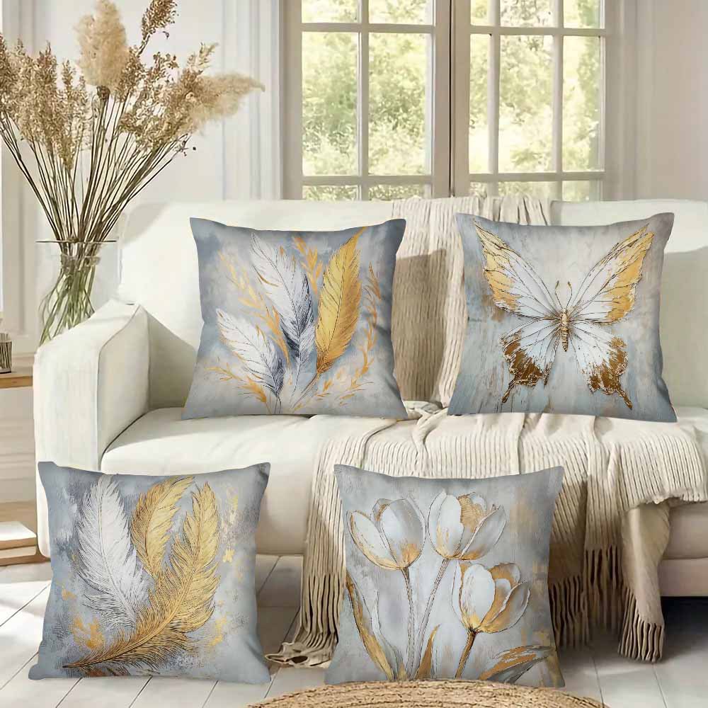 Temuよく売れている金銀の蝶の羽の花の亜麻の抱き枕カバーjitはリビングのソファーの装飾のクッションカバーを代行します。
