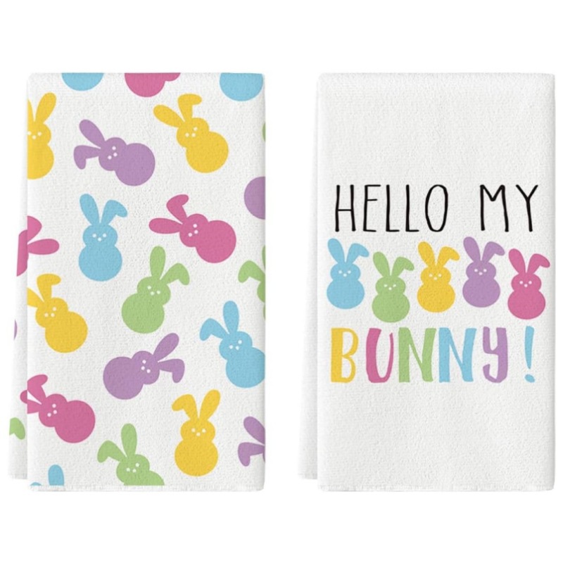 クロスボーダー熱売カラーウサギプリントイースターキッチンタオル超繊維材質レストラン皿洗い布現物卸売り
