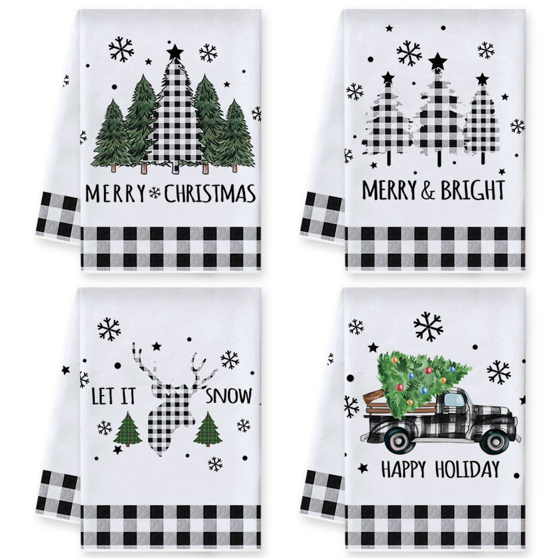 国境を越えた売れ筋のクリスマスキッチン装飾ディッシュタオルマイクロファイバーホームテーブルクロスハンドタオルホリデーデコレーション