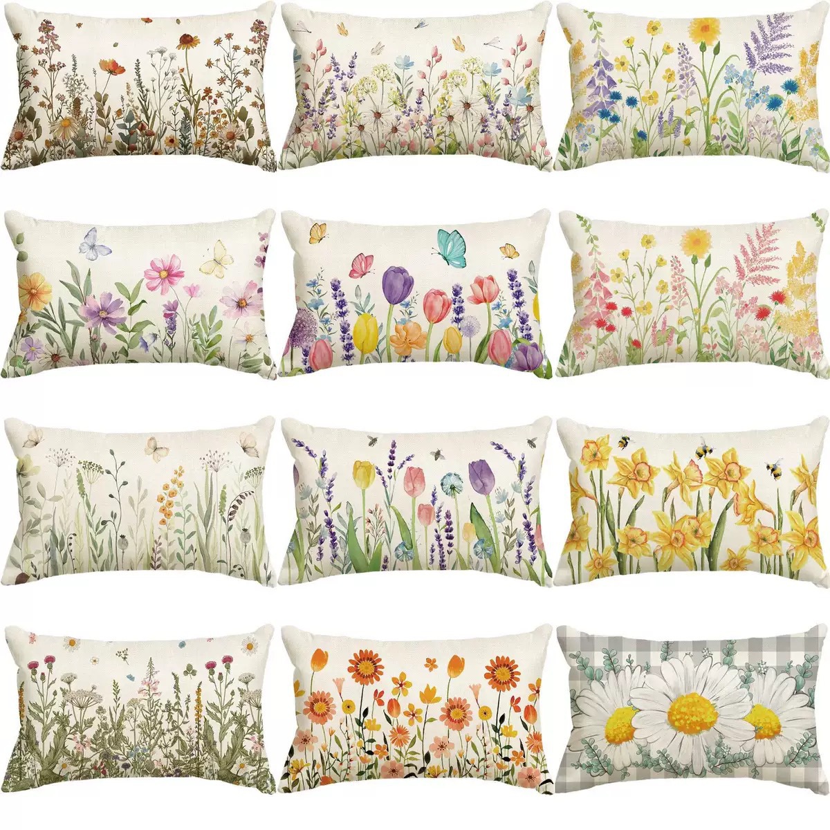 国境を越えたアマゾンの新しい春の花抱き枕カバー亜麻プリント花卉ソファークッションカバー家庭用枕カバー