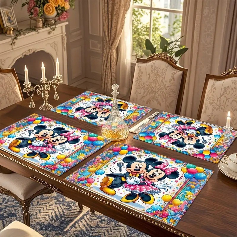 TEMU人気アニメミッキーマウス汚れに強い食事マットスティッチ亜麻プリント吸水速乾食器断熱マット
