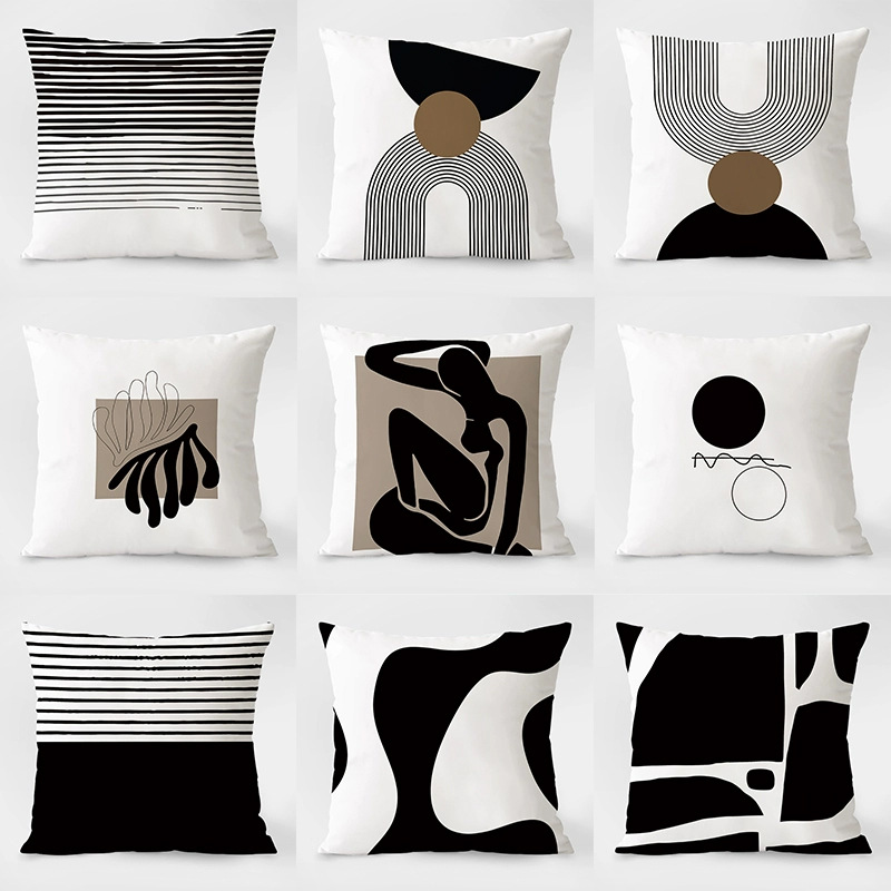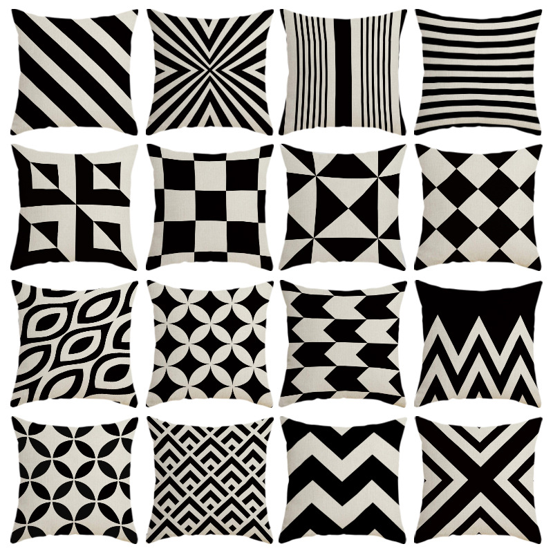 アマゾン白黒防水抱き枕カバー家庭幾何学図形ソファー枕ポリエステルプリントクッション卸売り