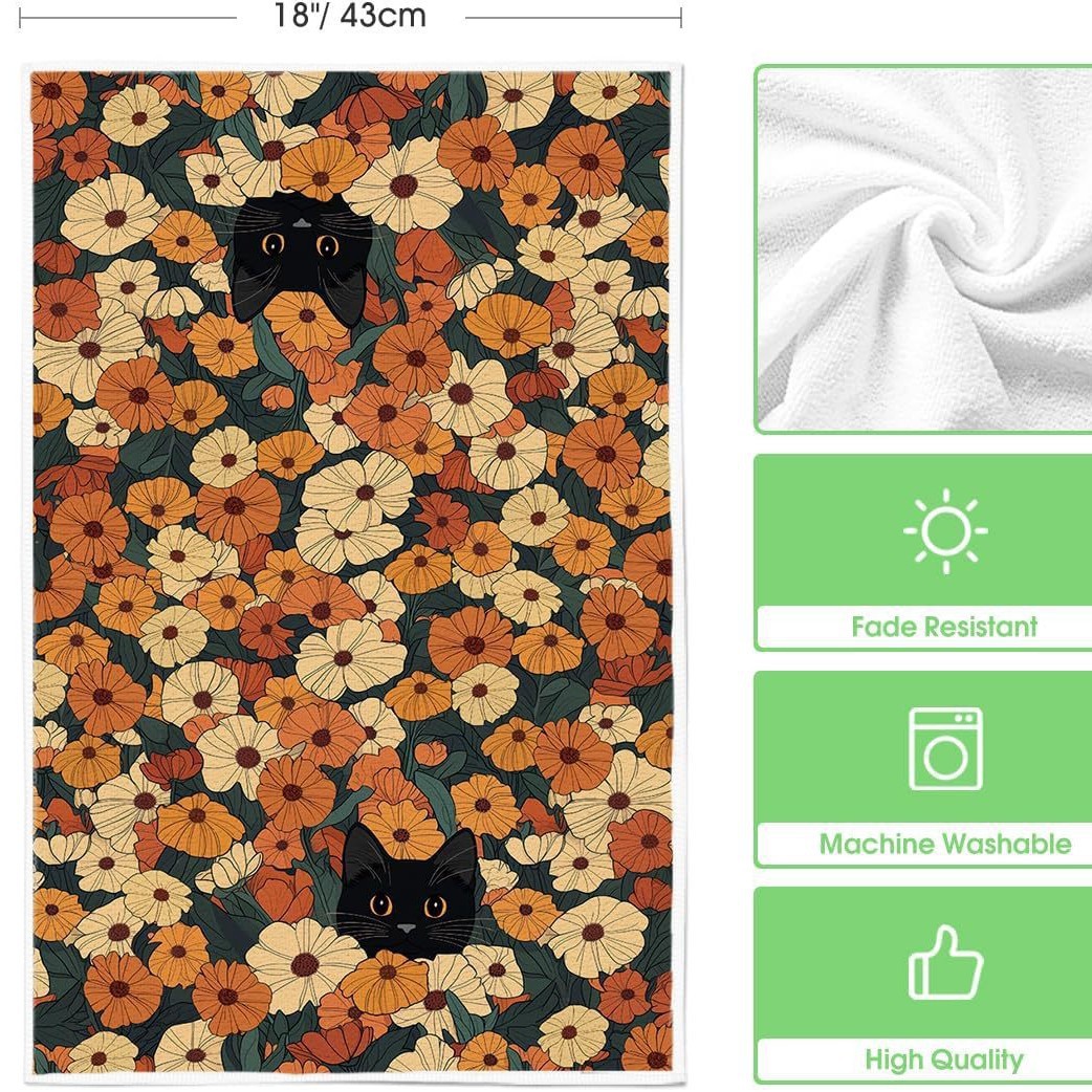 国境を越えた人気の秋のカボチャキッチンタオルアマゾンマイクロファイバー黒猫漫画花ギフトタオル