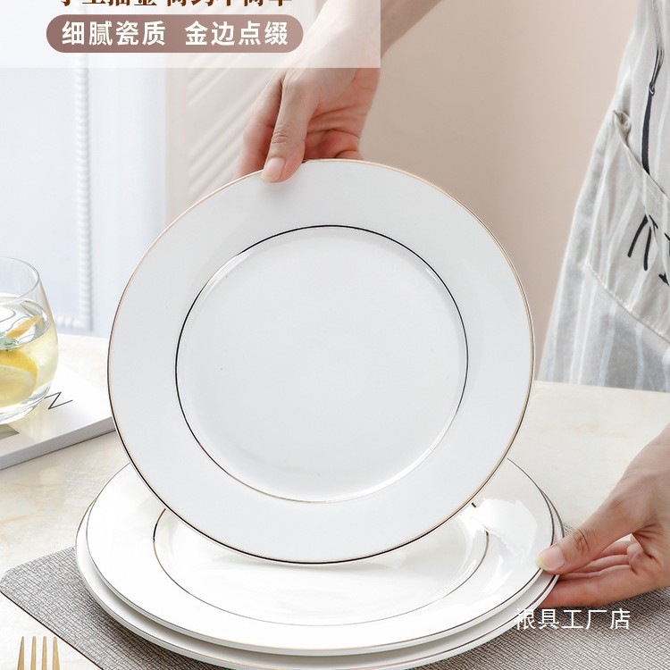 金縁セラミック大皿ステーキプレート家庭用野菜プレートフラットプレート無地レストランプレート洋食プレート大皿チキン卸売