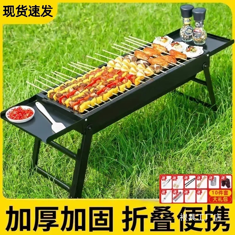 バーベキューグリルバーベキューグリル屋外ポータブル超厚手のステンレス鋼インターネット有名人家族ツールのフルセットバーベキューグリル卸売
