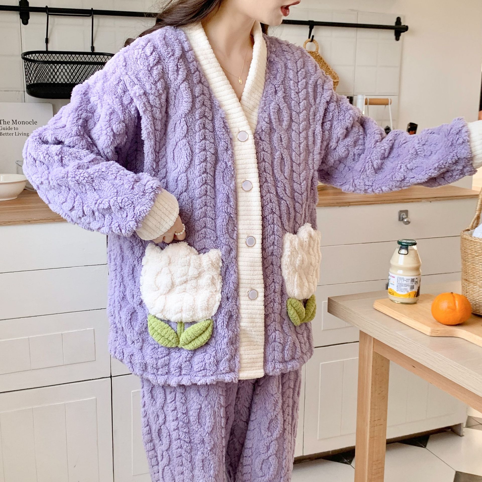 アニメパジャマの女性サンゴのベルベット秋の冬2024の新しいベルベットは冬のフランネルを厚くして家の服を着ることができる