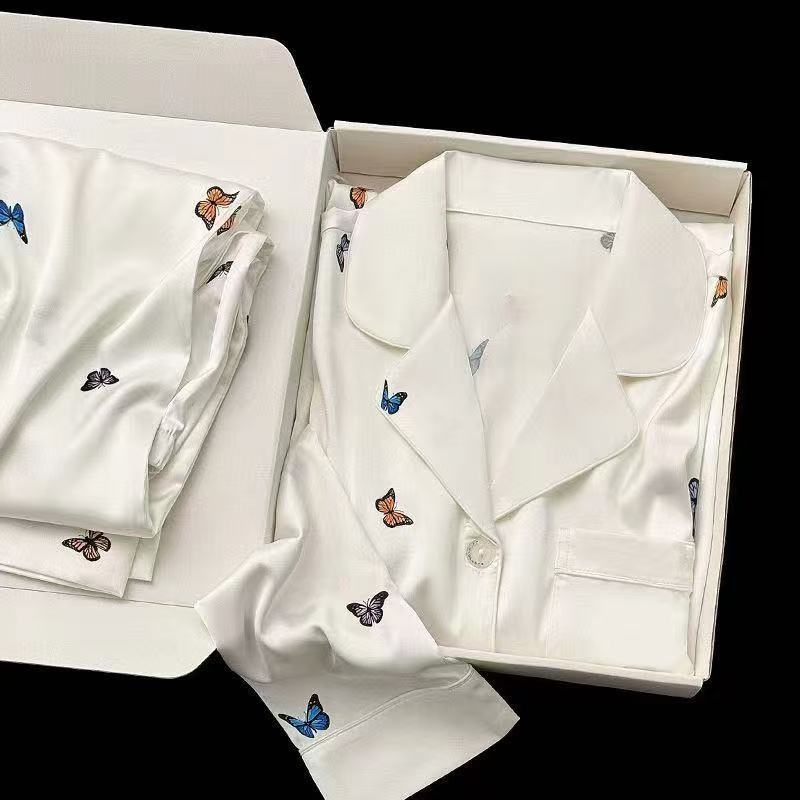氷糸パジャマ女春秋長袖長ズボンの新型起爆高級感は夏の家庭服女性スーツを着ることができる