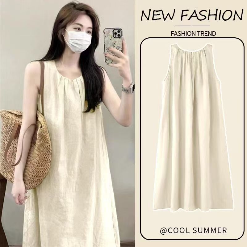 胸パッド付きクラウドコットンナイトガウン、女性用、ハイエンドサマーベスト、ノースリーブ、屋外で着用可能、ミドル丈パジャマドレス