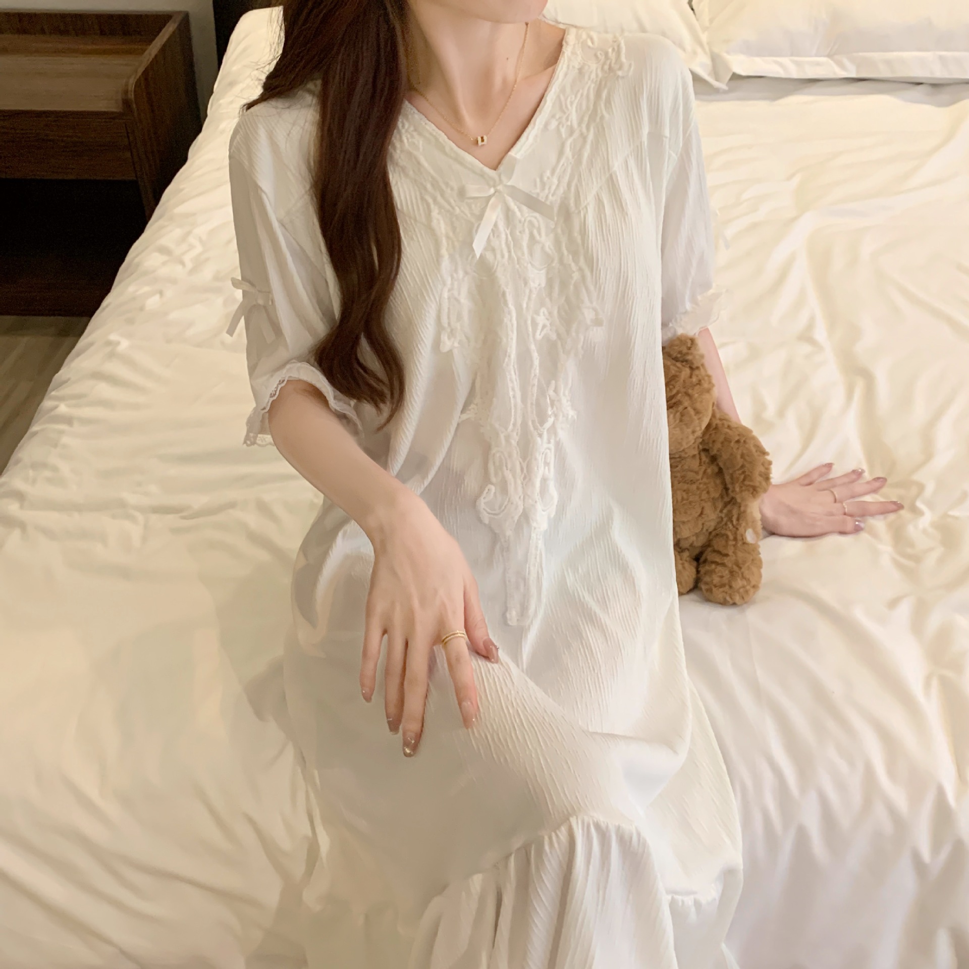 胸パッド付きフレンチパジャマ女性夏半袖純欲王女宮廷風ホームウェアは2025新夏を着ることができる